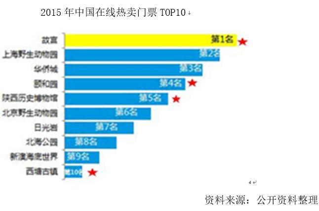 2015年熱銷景區(qū)門票TOP10中,以北京景區(qū)數(shù)量最多;同時,歷史文化類占四成。隨著文化旅游市場迅速發(fā)展,促使歷史文化類旅游這種具有文化教育意義的資源成為熱門產(chǎn)品。