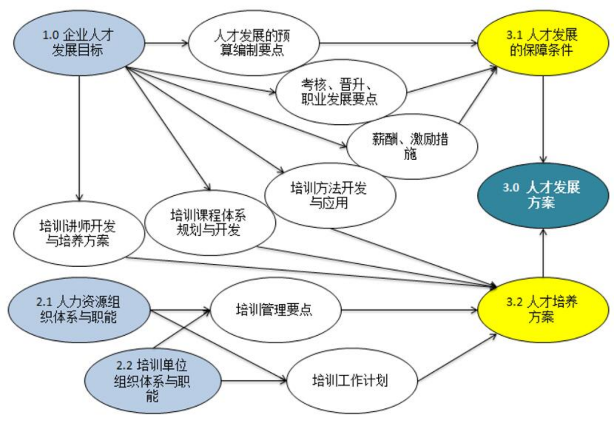 其中:培訓(xùn)管理體系包括培訓(xùn)制度、培訓(xùn)政策、管理人員培訓(xùn)職責(zé)管理、培訓(xùn)信息搜集反饋與管理、培訓(xùn)評估體系、培訓(xùn)預(yù)算及費(fèi)用管理、培訓(xùn)與績效考核管理等一系列與培訓(xùn)相關(guān)的制度。培訓(xùn)課程體系是指包括企業(yè)文化培訓(xùn)、入職培訓(xùn)、崗位培訓(xùn)、專業(yè)知識和專業(yè)技術(shù)培訓(xùn)、營銷培訓(xùn)、管理和領(lǐng)導(dǎo)技能培訓(xùn)等在內(nèi)的一整套具有本企業(yè)特色的培訓(xùn)課程。