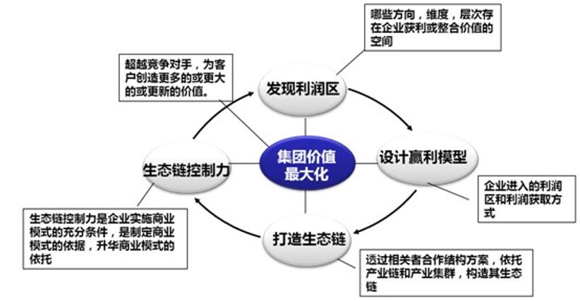 漢哲以實(shí)現(xiàn)集團(tuán)價(jià)值最大化為核心目標(biāo),從發(fā)現(xiàn)利潤區(qū)、設(shè)計(jì)贏利模型、打造生態(tài)鏈、生態(tài)鏈控制力等四個(gè)維度,對(duì)商業(yè)模式進(jìn)行創(chuàng)新設(shè)計(jì)。