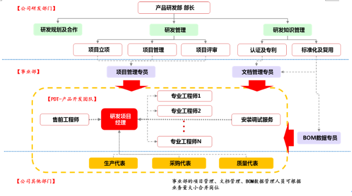 再如,研發(fā)系統(tǒng),明確研發(fā)管理部門和各事業(yè)部研發(fā)的功能界面、組織體系和業(yè)務(wù)運(yùn)作邏輯: