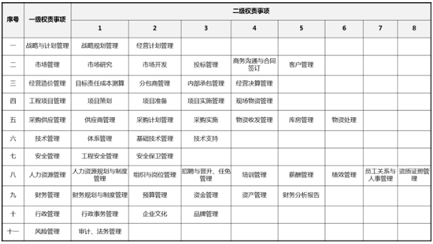 基于組織架構(gòu)和功能定位,梳理出11個一級大類,共43個二級細類下的各項管控事項,逐一明確各級管控權(quán)限。