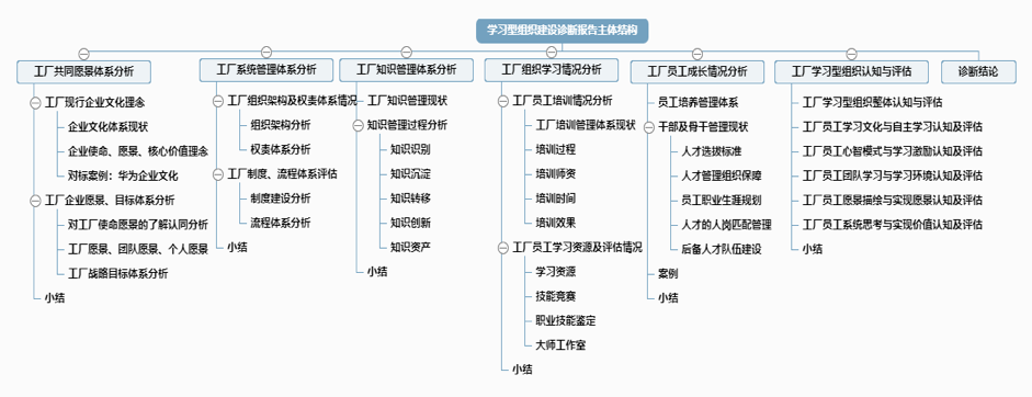 項(xiàng)目啟動(dòng)之初,通過內(nèi)部資料研究、企業(yè)深度訪談、員工調(diào)查問卷、外部標(biāo)桿資料對比,政策研究等維度進(jìn)行全面診斷,發(fā)現(xiàn)問題并提出改進(jìn)的思路,形成了《學(xué)習(xí)型組織建設(shè)調(diào)研診斷報(bào)告》、《企業(yè)文化調(diào)研診斷報(bào)告》。