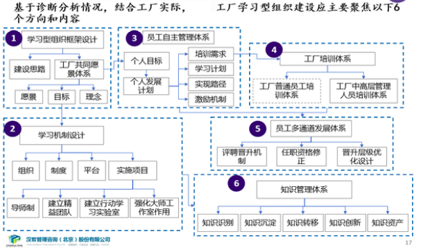 根據(jù)工廠業(yè)務(wù)發(fā)展需要,建立工廠愿景體系,建立學(xué)習(xí)機(jī)制,完善中高層管理人員培訓(xùn),形成員工共自主管理體系、多通道發(fā)展體系,組建工廠的知識(shí)管理體系。
