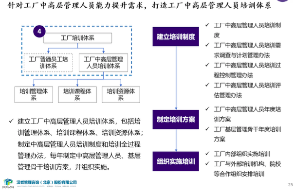 4、完善工廠培訓(xùn)管理體系,打造工廠中高層管理人員培訓(xùn)體系。