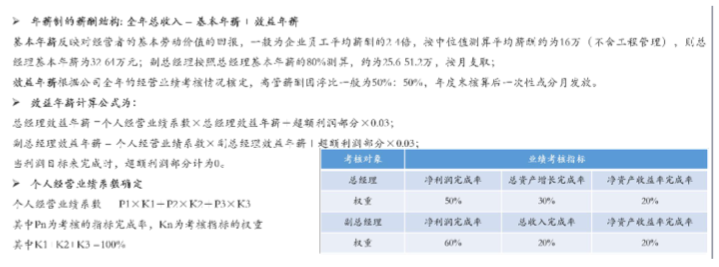 并對管理層薪酬方案建議??偨浝?、副總經理擔負著實現(xiàn)公司整體業(yè)績的責任。根據(jù)現(xiàn)代企業(yè)制度的要求,結合國家相關政策和公司運行特點和實際情況,對總經理、副總經理的薪酬采用以與企業(yè)整體經營業(yè)績相掛鉤的年薪制。