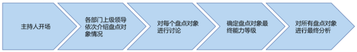 人才校準(zhǔn)會的主要流程為由主持人引導(dǎo)這個過程,由直接上級對被盤點隊對象進行討論。