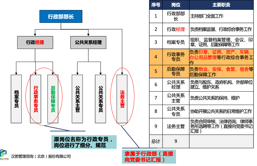根據(jù)組織職能,對各部門的崗位進(jìn)行梳理,明確各部門的崗位清單以及各崗位需要承擔(dān)的主要職責(zé)。