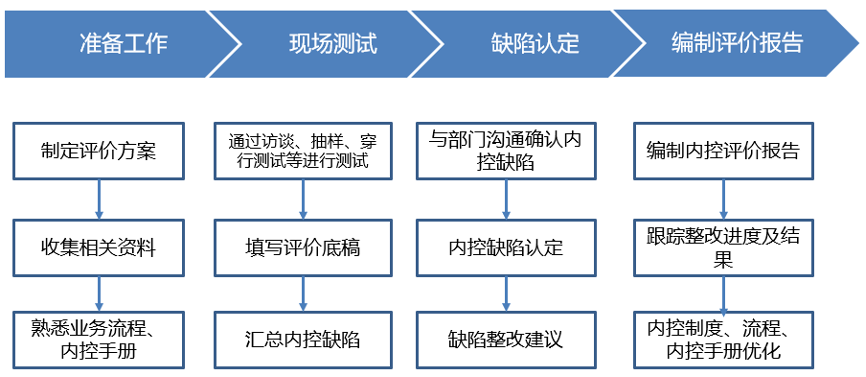 本次內(nèi)控評(píng)價(jià)流程包含四個(gè)工作步驟,涵蓋了內(nèi)控評(píng)價(jià)開展過程中的各項(xiàng)具體工作,實(shí)現(xiàn)了從制定評(píng)價(jià)方案到內(nèi)控測(cè)試、缺陷跟蹤、制度流程更新等完整閉環(huán)。