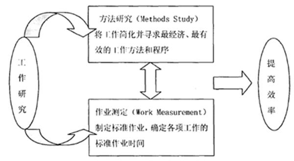 其中:方法研究和作業(yè)測定是工業(yè)領(lǐng)域的兩大技術(shù)。作業(yè)測定是方法研究的基礎(chǔ),方法研究是在現(xiàn)有作業(yè)(作業(yè)測定后制定的新的標準作業(yè))的基礎(chǔ)上,對其方法進行研究分析,尋求最合理的作業(yè)順序,并用來制定新的作業(yè)方法,方法研究的目的是為作業(yè)測定提供研究的基礎(chǔ),它包括程序分析、操作分析和動作分析;方法研究作為作業(yè)測定的基礎(chǔ),作業(yè)測定是在新方法(方法研究改善后的新方法)的基礎(chǔ)上,對作業(yè)單元進行研究分析,確定各項作業(yè)的標準作業(yè)時間,并編制作業(yè)指導書,作為一種指導方法,作業(yè)測定的目的是便于方法研究的改善,它包括秒表時間研究、工作抽樣、預定時間法和標準資料法。