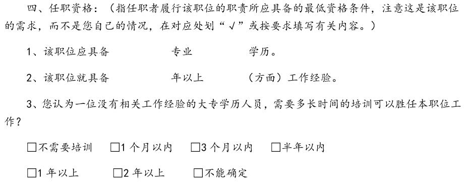 問卷法是采用問卷的形式來獲取工作分析的相關(guān)信息的一種方法,根據(jù)問卷的結(jié)構(gòu)化程度不同,分為結(jié)構(gòu)化問卷、非結(jié)構(gòu)化問卷和半結(jié)構(gòu)化問卷三種。