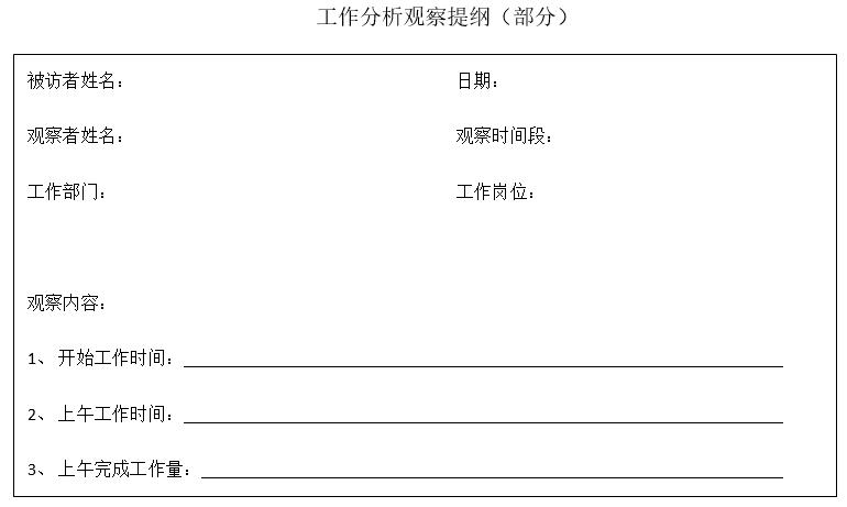 觀察法分為參與式觀察法和非參與式觀察法兩大類,所謂參與式觀察法,觀察者會(huì)假定自身是被觀察人群中的一員,并履行作為該群體成員應(yīng)該履行的職責(zé),從被觀察人的角度,對(duì)相關(guān)工作信息進(jìn)行梳理。而在非參與式觀察法中,觀察者不參與被觀察群體的工作活動(dòng),而是作為一個(gè)中立者對(duì)被觀察人進(jìn)行觀察、分析和總結(jié)。觀察后一般以工作日志的方式進(jìn)行記錄。