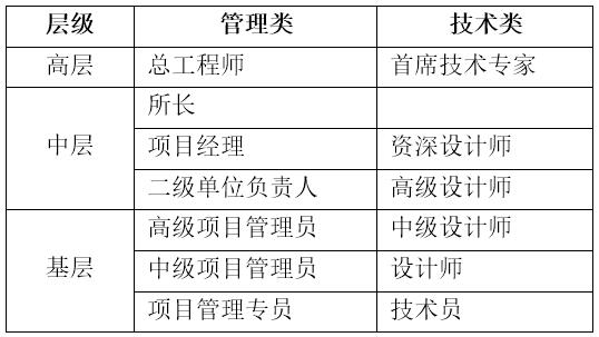 專業(yè)技術(shù)人員作為建筑設(shè)計(jì)院的核心人力資源,是實(shí)現(xiàn)單位戰(zhàn)略目標(biāo)、增強(qiáng)市場(chǎng)競(jìng)爭(zhēng)力的中堅(jiān)力量,對(duì)他們的管理對(duì)設(shè)計(jì)院的持續(xù)發(fā)展有著重要的影響。專業(yè)技術(shù)人員的晉升通道很窄,往往造成“千軍萬(wàn)馬擠獨(dú)木橋”,降低了人員的滿意度,因此可以打造通過多通道的設(shè)置解決職業(yè)發(fā)展的瓶頸問題,在縱向上劃分的較多層級(jí),提高專業(yè)技術(shù)人員的工作動(dòng)力。