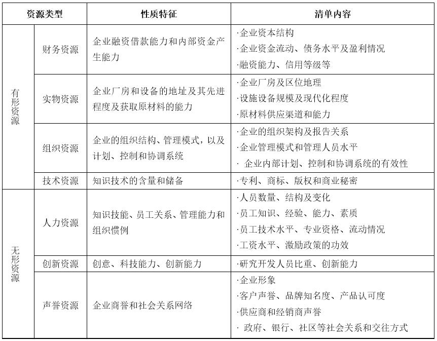 對(duì)現(xiàn)有資源進(jìn)行盤(pán)點(diǎn)是為了確定企業(yè)目前所擁有和可獲得的資源儲(chǔ)備情況。經(jīng)過(guò)分析,需要列出企業(yè)目前的資源清單,企業(yè)資源清單通常包括以下內(nèi)容: