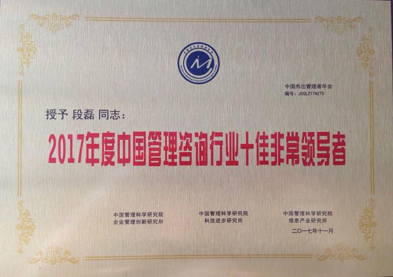 會議期間,舉行了中國企業(yè)家精神年度表彰盛典新聞發(fā)布活動。中國管理科學(xué)研究院向致力于中國企業(yè)管理創(chuàng)新與進(jìn)步并作出突出貢獻(xiàn)的機(jī)構(gòu)和個人頒發(fā)了榮譽(yù)證書。作為中國管理咨詢領(lǐng)域的領(lǐng)軍企業(yè)之一,漢哲管理咨詢(北京)股份有限公司(股票代碼:8732830)因其在企業(yè)管理咨詢領(lǐng)域的突出貢獻(xiàn)與優(yōu)秀的服務(wù)品質(zhì)榮膺“2017年度中國科學(xué)管理突出貢獻(xiàn)獎”,漢哲咨詢董事長、首席專家段磊博士也因十五年致力于中國企業(yè)管理改革與提升的卓越貢獻(xiàn),獲得“2017年度中國管理咨詢行業(yè)十佳非常領(lǐng)導(dǎo)者”稱號。